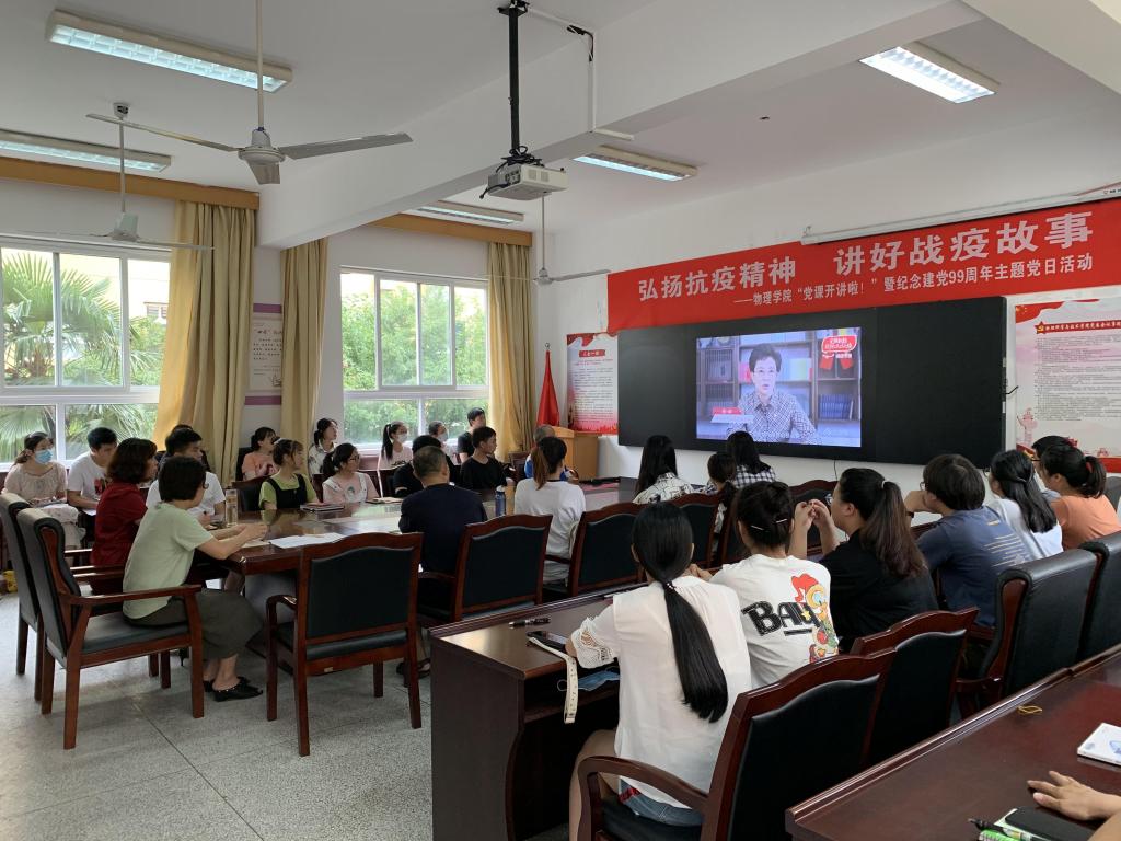 为进一步学习贯彻习近平总书记关于“让党旗在防控疫情斗争第一线高高飘扬”的重要指示精神,提升学生党员的爱国情感,深入宣传疫情防控的感人事迹和生动经验。7月1日,色花堂 组织50余名师生党员在党员之家集中观看《高校党组织战“疫”示范微党课“七一”专场》。