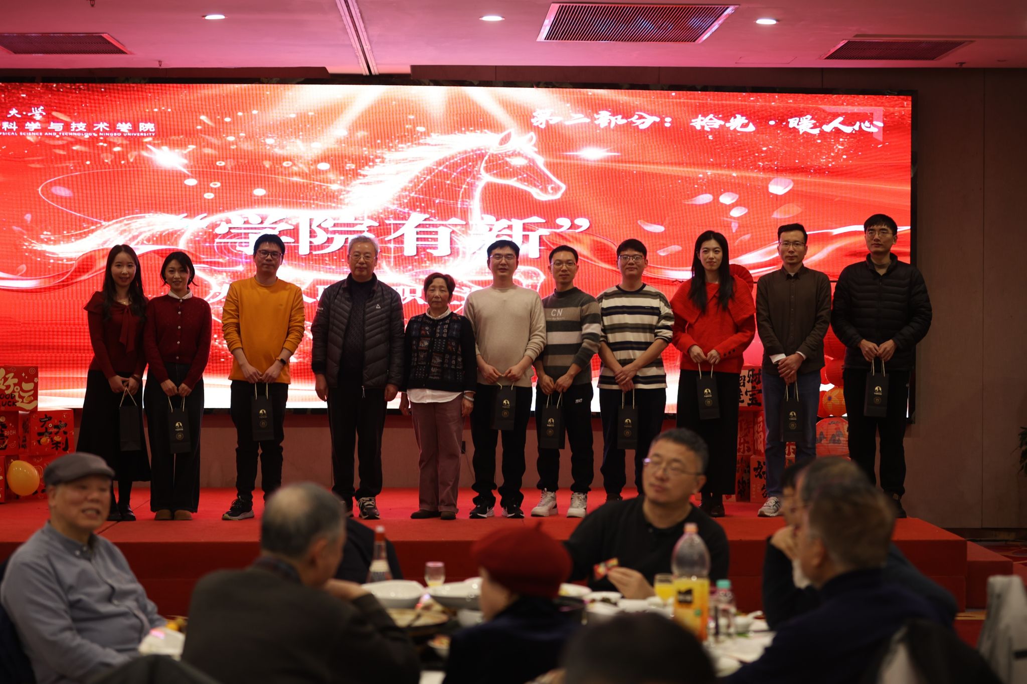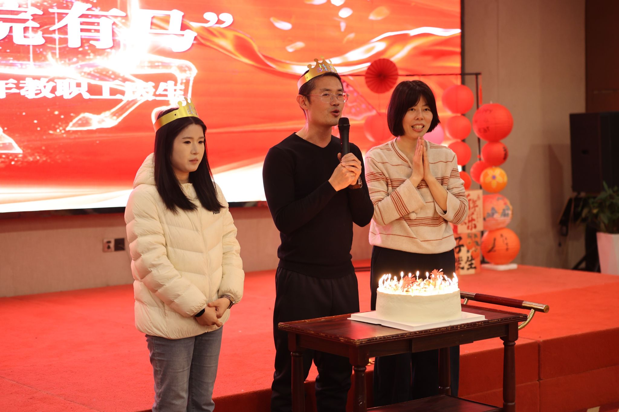 恰逢农历马年,“学院有马”环节特意为属马的教职工集体庆生,学院领导送上定制的生日蛋糕,现场暖意融融,欢声笑语不断。