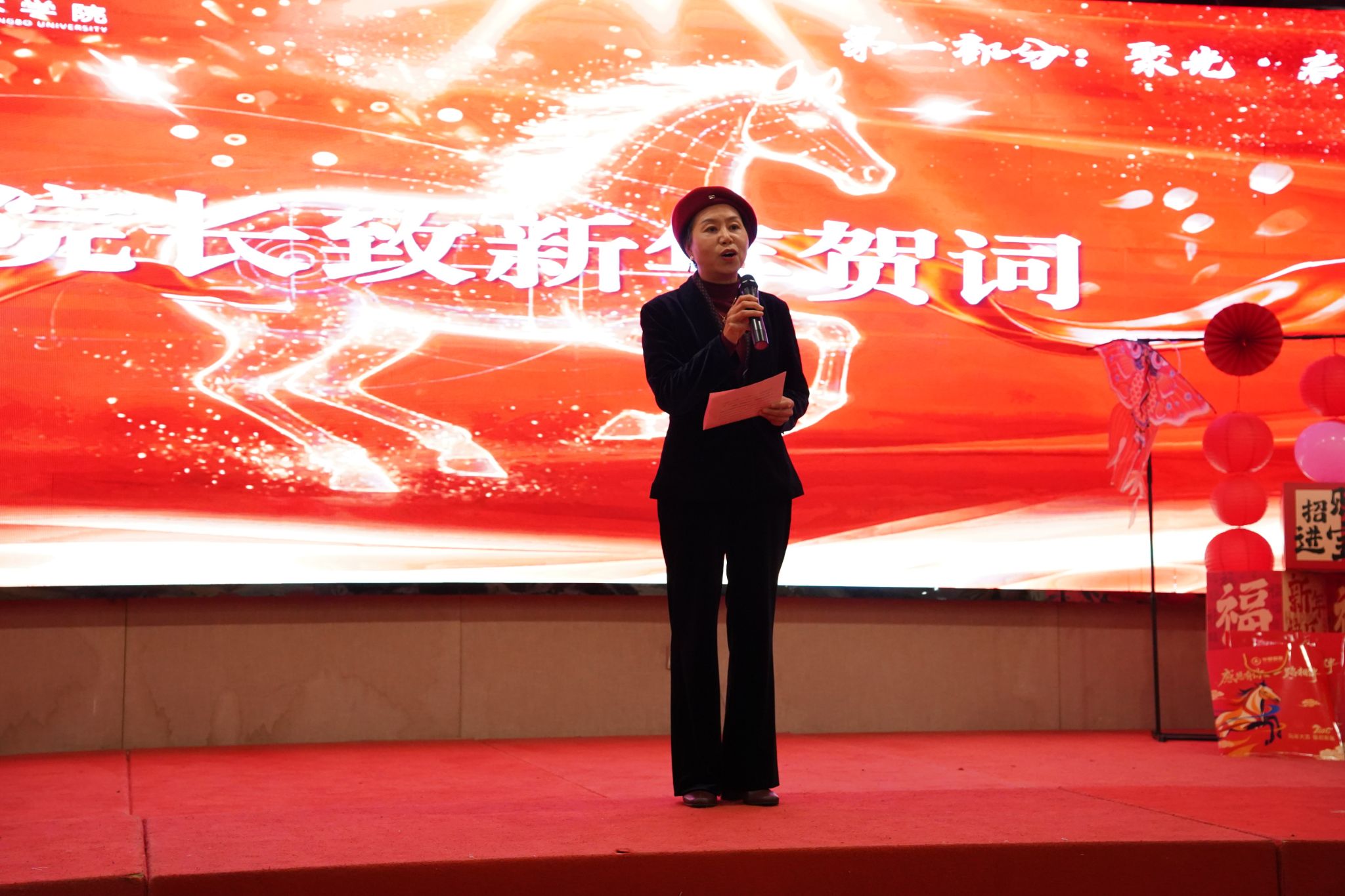 压轴的“学院有福”环节,学院领导亲手为每一位教职工送上蕴含吉祥寓意的“马”、“福”字书法作品,将马年的福气与好运传递给现场的每一个人,寄予了对新年的美好期盼。