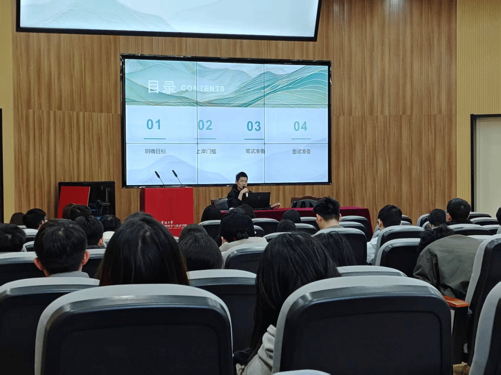 活动特邀邱佳涵、蒋卓尔两位优秀的本科生校友,以及研究生张龙龙同学担任主讲嘉宾。三位嘉宾结合自身扎实的备考经历与实战经验,围绕考编政策趋势、笔试重难点突破、面试礼仪与无生试讲技巧、区域岗位选择策略等维度展开了细致分享。他们通过生动真实的案例,为在场同学理清了备考逻辑,指明了努力方向。