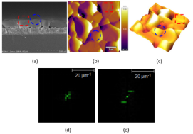卤化物钙钛矿半导体因其可调带隙、高吸收系数、双极载流子传输和长载流子扩散长度等卓越光电特性掀起了光伏领域的研究热潮。短短10余年的发展,多晶钙钛矿光伏器件的性能已经可以媲美有着60年研究历史的晶硅电池。实验发现钙钛矿微尺度异质特性与光伏器件整体输出性能密切相关,钙钛矿内部晶粒的择优取向控制对钙钛矿光伏器件性能起到决定性作用。在以前的报道中,研究普遍认为钙钛矿多晶薄膜性质是均一的。该论文通过扫描探针显微镜定点探索了微区晶粒光电特性,发现局域电势和电流大小与微区晶粒生长取向有关,证实了多晶薄膜存在着光电异质特性。该论文的研究工作为通过控制晶粒的生长取向提高钙钛矿太阳能电池的效率提供了新思路。
