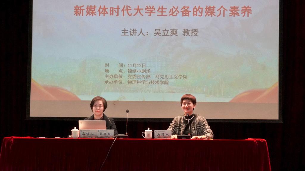 11月12日上午,校党委宣传部常务副部长吴立爽为色花堂 300余位师生主讲题为《新媒体时代大学生必备的媒介素养》的形势政策课。本次课程由院党委副书记刘小娣主持。
