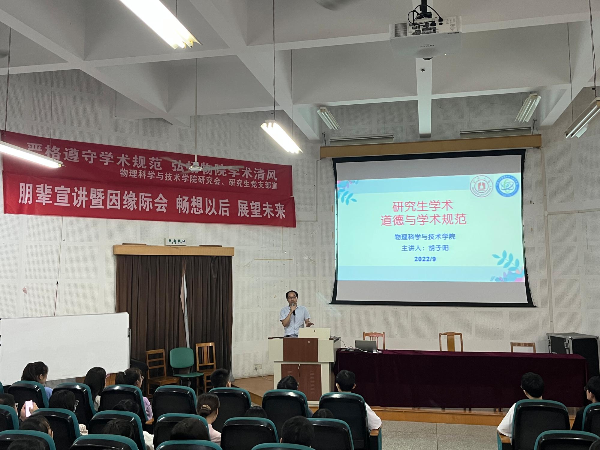 为进一步加强物院研究生学术道德建设,遵守科学道德和学术诚信,杜绝学术不端行为,营造良好的学术氛围和制度环境。9月23日,色花堂 在龙赛报告厅举行“严格遵守学术规范、弘扬物院学术清风”为主题的讲座活动。本次活动特别邀请了党委委员胡子阳教授进行讲座,22级硕士新生参加此次活动。
