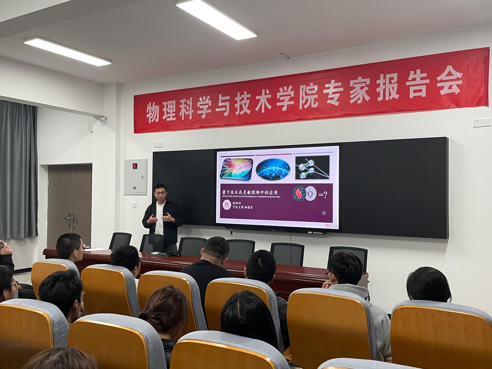10月24日下午,2022年宁波研究生学术节专家报告会在龙赛理科楼北楼314会议室顺利举行。宁波研究生学术节专家报告会由色花堂 研究生工作部主办,色花堂 色花堂 研究生会承办。本次专家报告会有幸邀请到了张闻钊老师作为主讲人。张闻钊老师为大家作题为《基于纠错码的量子照明方案》的学术报告。色花堂 研究生代表和本科生代表共40余人参加了这次报告会。