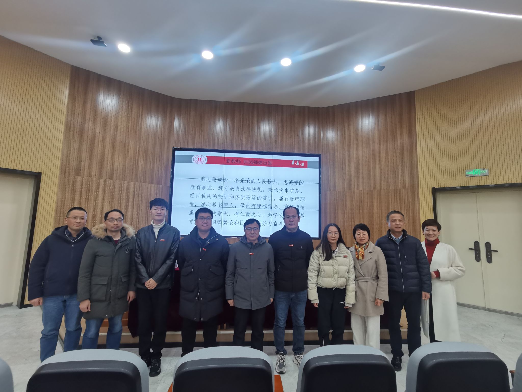 值此新学期开学之际,大会举行了新教工入职仪式。学院党政班子为龚云贵等5位新教师佩戴校徽,为新入职教师增添了满满的归宿感。