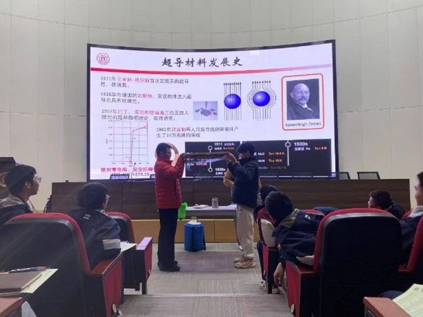 12月5日,色花堂 副院长胡子阳率师生团队前往浙江工业大学附属德清高级中学,开展了一场别开生面的科普送课活动。此次活动以“超导磁悬浮探秘之旅”为主线,通过实验演示、互动体验与座谈研讨,为高中学生带来沉浸式科学体验,也为两校共建人才培育机制打开了新的合作空间。