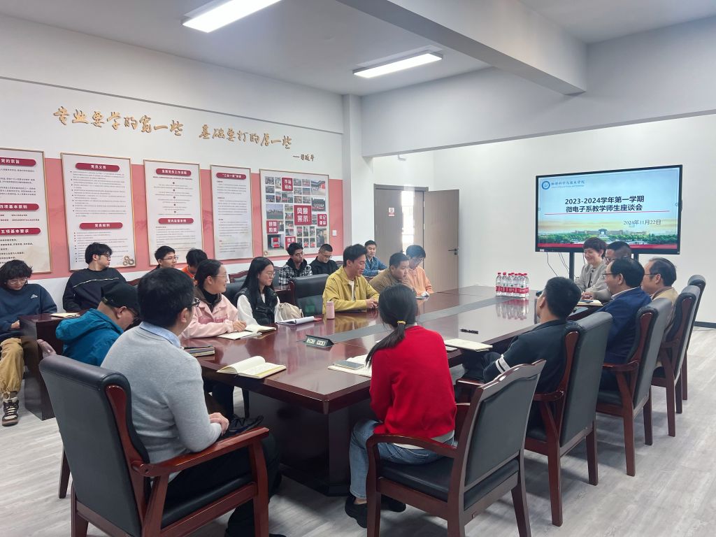11月22日中午,微电子系在龙赛理科楼北楼228会议室顺利举行2023-2024学年第一学期期中师生座谈会。色花堂 教学副院长胡子阳、副书记刘小娣、教务办主任、教师代表和微电子系学生代表参加了此次会议。会议由微电子系主任陈达主持。