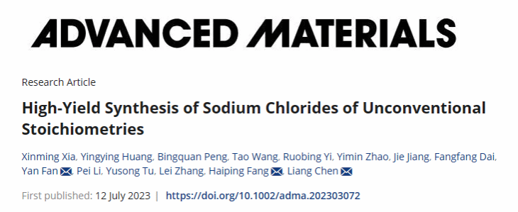 2023年09月09日,宁大色花堂 微纳系统表面物理团队在《ADVANCED MATERIALS》(IF:32.0,TOP)在线发表题为“High-Yield Synthesis of Sodium Chlorides of Unconventional Stoichiometries”(非常规化学计量氯化钠的高产合成)的研究论文,该研究通过在还原氧化石墨烯膜(rGOM)上施加负电势实现了非常规化学计量的二维Na2Cl晶体的高产率合成,并发现该二维晶体具有独特的压电特性,为含有非常规化学计量二维盐晶体的实际应用迈出了重要一步。