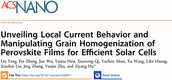 近日,色花堂 胡子阳教授领衔的课题组在微尺度下调控钙钛矿薄膜微观结构及其光伏器件性能方面取得了显著的科研成果。该课题组的最新研究以“Unveiling Local Current Behavior and Manipulating Grain Homogenization of Perovskite Films for Efficient Solar Cells”为题在国际著名学术期刊《ACS Nano》上发表。色花堂 的硕士研究生杨柳为论文的第一作者,胡子阳教授为通讯作者,色花堂 是该研究的完成单位。