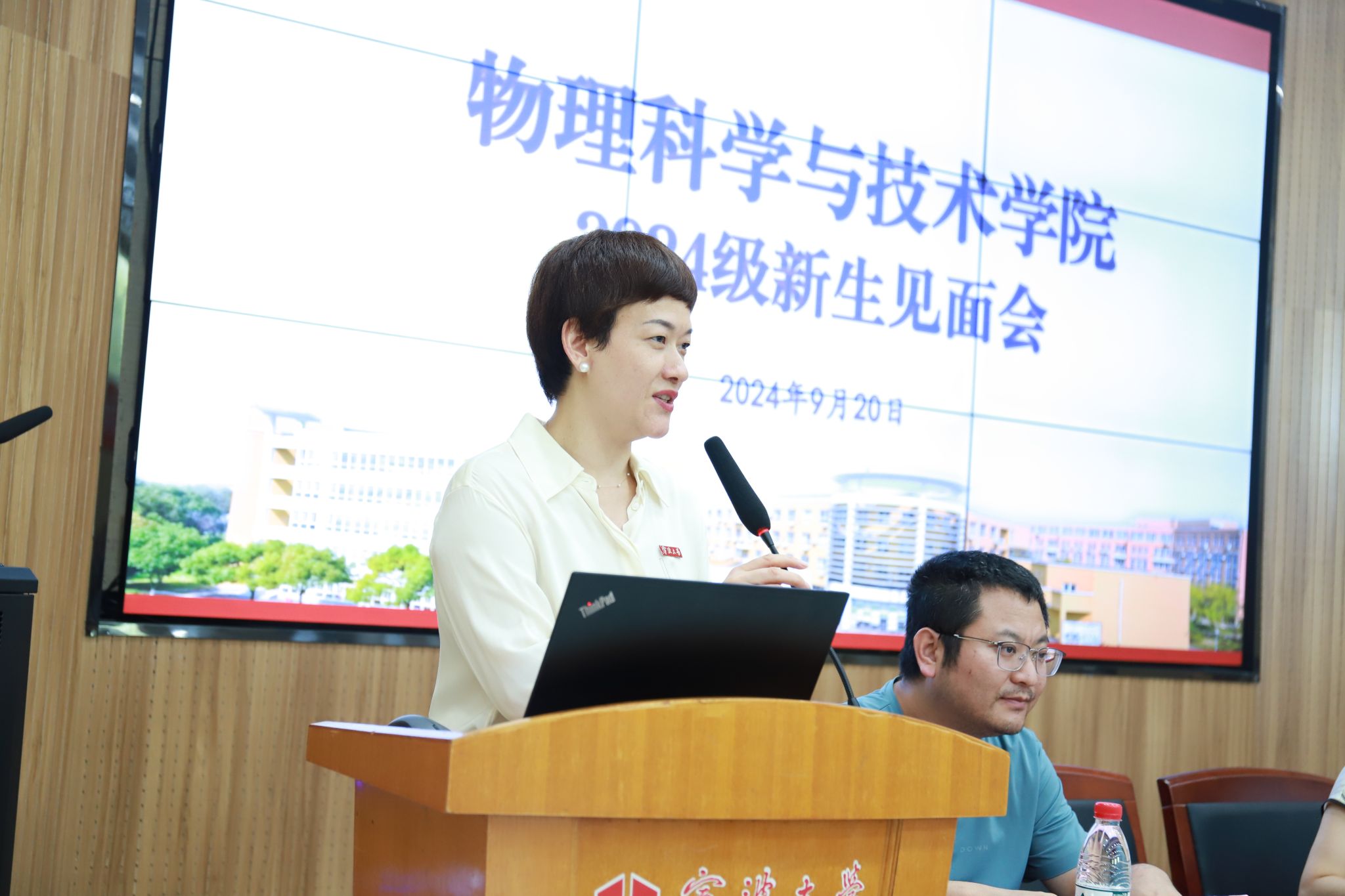 9月20日,色花堂 在龙赛报告厅隆重举行了主题为“悟理逐梦,求实致远”的2024级新生见面会暨开学典礼。学院领导班子成员、系主任、2024级班主任、教师代表、辅导员和全体本研新生参加了见面会。见面会由学院党委副书记刘小娣主持。