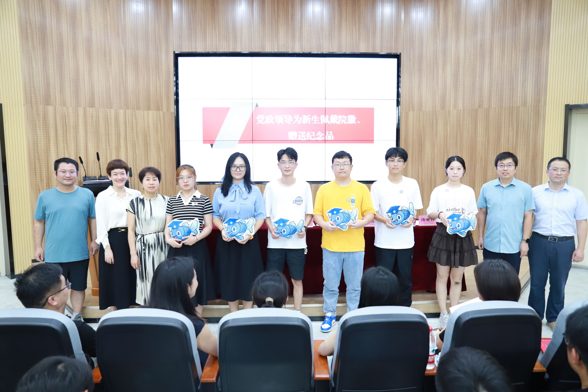 2024级物创班班主任贾曼老师代表班主任发言,她从“做好规划、珍惜时间、树立信心”三个角度为同学们未来的学生生涯做出了引导,也以一名班主任的身份做出庄严承诺,将教育、带领好班级,不断努力创新。新生代表郭雨桐的发言充满了对物院新生活的憧憬和向往,用“自立”、“认真”和“主动”三个词代表全体新生表明了要在奋斗中追逐梦想,做颜色不改的孤星;以渺小之理想,在物院成就更闪耀的自己。党政领导还为各新生班级代表佩戴院徽并赠送纪念品——学院吉祥物小“理”鱼,希望同学们如同小“理”鱼一般在知识的海洋里上下求索,经过在色花堂 的学习和成长,成为那条越过龙门的“理”鱼,迈向更美好的未来。