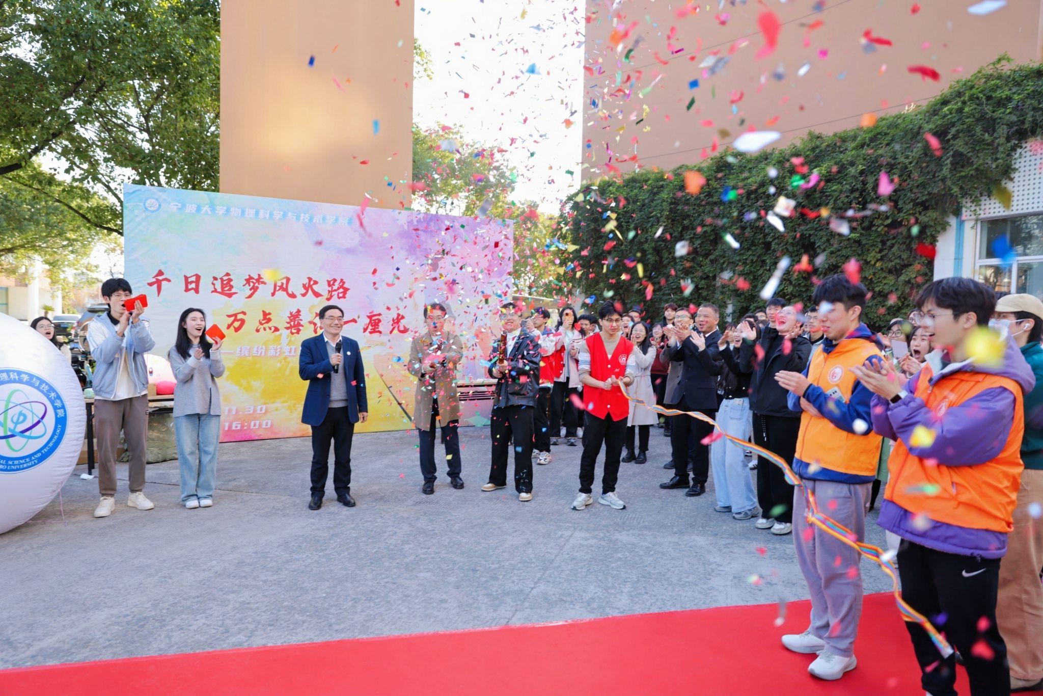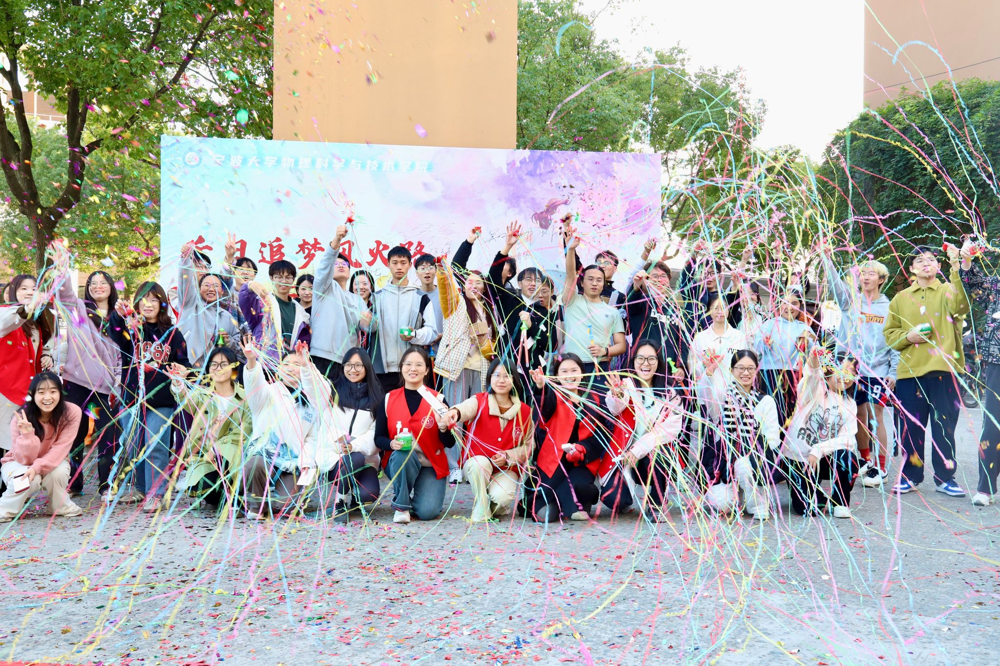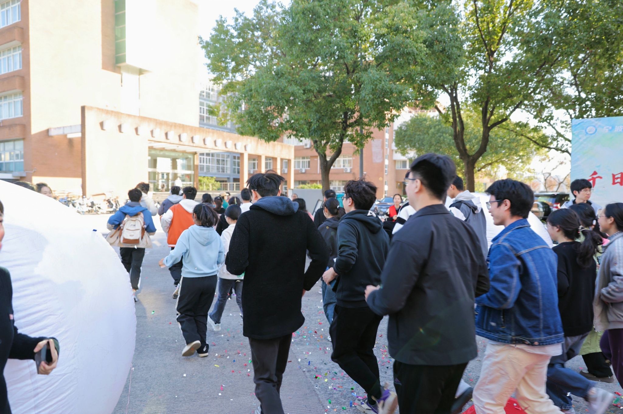 当日下午来自十余个学院的师生和返校的物院校友们共计200余人齐聚于龙赛理科楼前,蓄势待发;工作人员们有条不紊,一切准备就绪,大家都以饱满的热情迎接即将到来的活动。在彩带飞舞和在礼炮齐鸣中校长蔡荣根院士宣布彩虹跑开跑。随着蔡校长的一声令下,参与者们一齐冲出起跑线、奔向各个活动打卡点。