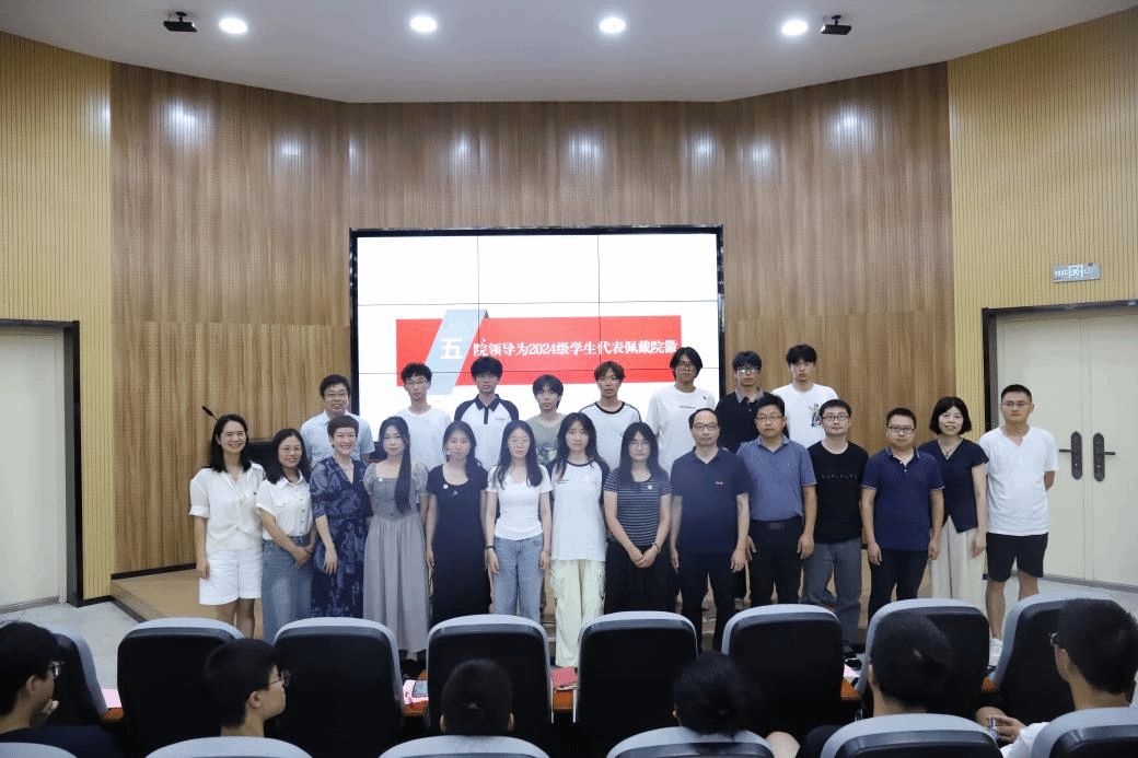 见面会上,学院党政领导为学生代表佩戴院徽成为全场最具仪式感的环节。徽章象征着“物理人”的全新身份,并赋予同学们求实致远、不断探索的使命。