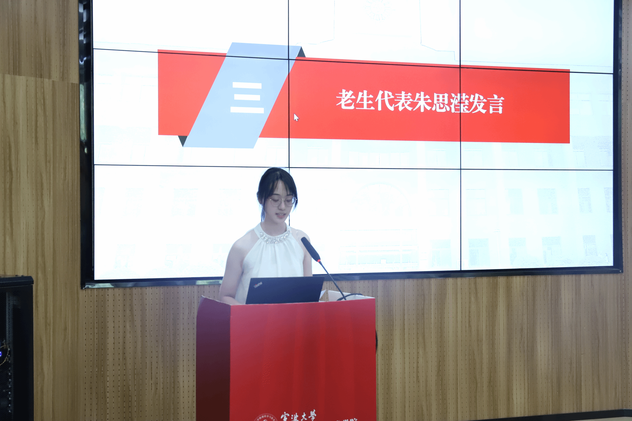 2024级微电子科学与工程专业的葛韫赫则作为分流学生代表发言,他回顾了大一基础学习与竞赛,感恩一年来师长们的关心帮助,他表示自己未来将以热爱勤勉继续探索物理、贡献国家。
