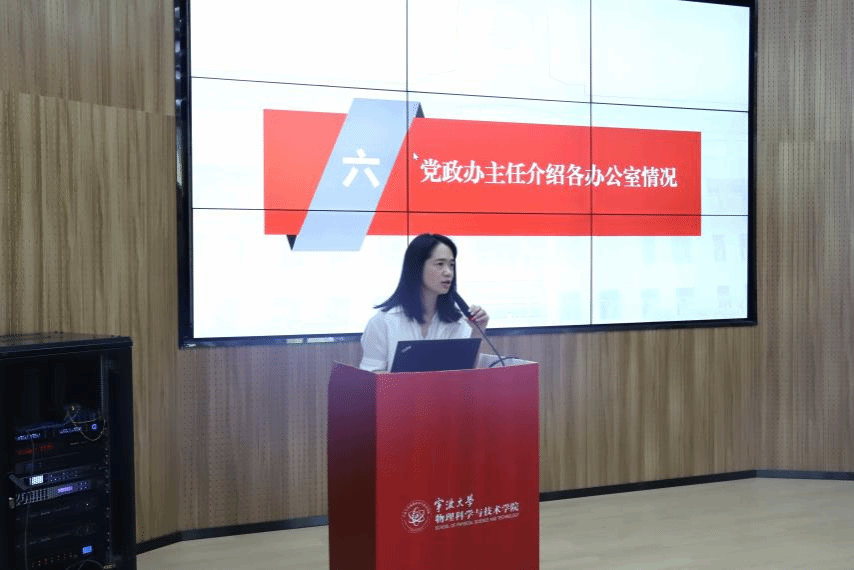 见面会的第二个环节,学院党政办、教务办、学工办代表依次上台,介绍了各自的职责分工并提醒学业生活事项:党政办统筹学院行政事务,负责设备维修申请、党建工作及研究生招生政策咨询;教务办强调选课时间节点与学分修读规则;学工办提供就业指导、寝室管理等服务。希望新同学们及时知晓色花堂概况 ,主动与老师们沟通获取支持。