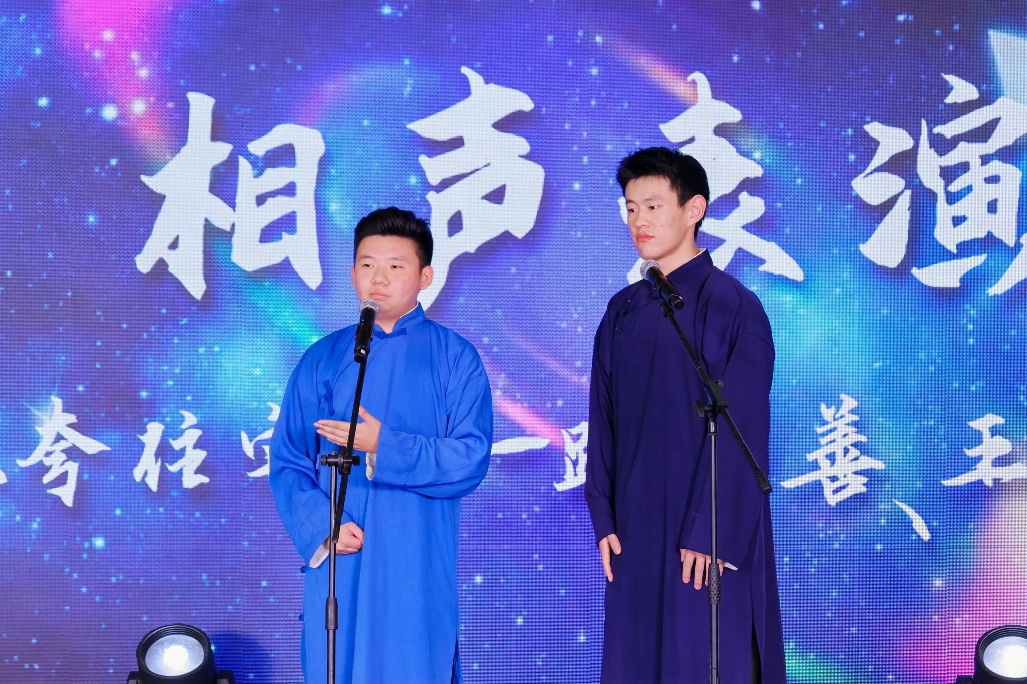 随后,下半年起将继续留在学院读研的路集善同学携搭档王籍萱为师生带来相声《夸住宅》,现场顿时充满了欢声笑语。