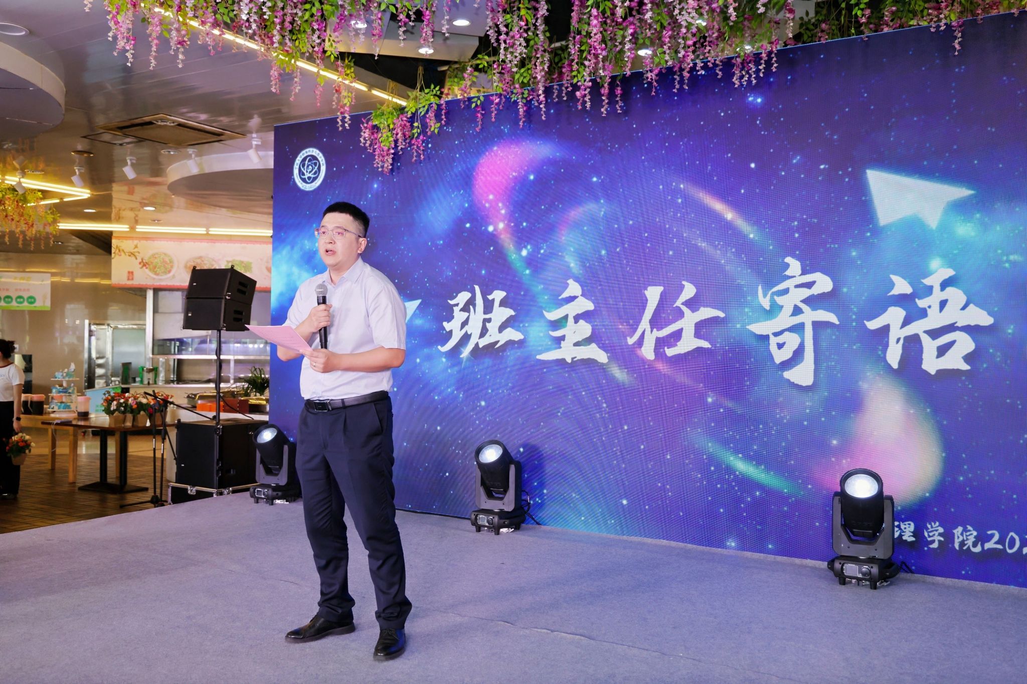 第二篇章“纠缠态·师恩难忘”以感恩为笔,温情暖暖。毕业班班主任代表王旭老师送上临别寄语,他动情地回忆:“看着你们从青涩少年成长为有理想、有担当的青年,是我们最大的欣慰。”他鼓励同学们保持好奇心,在各自领域追求卓越。