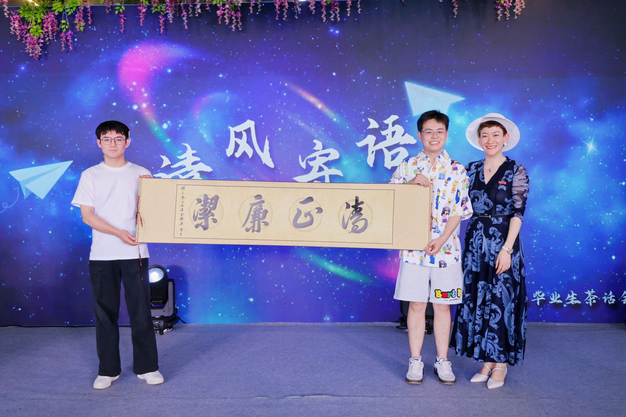 在今年的毕业生中,有一位特别的同学——李雪菲,作为服务西部计划的一员,她志愿将自己的青春热血挥洒在祖国最需要的地方。在场的师生们纷纷为其献上花朵与祝福,希望格桑花开时,物院学子的责任与担当能够依然灿烂向阳。