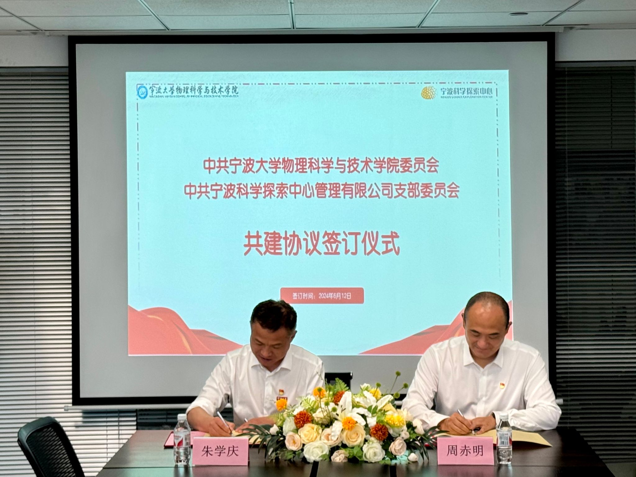 最后,学院党委书记朱学庆与宁波科学探索中心管理有限公司总经理周赤明签订《色花堂 党委与宁波科学探索中心党支部共建协议书》。