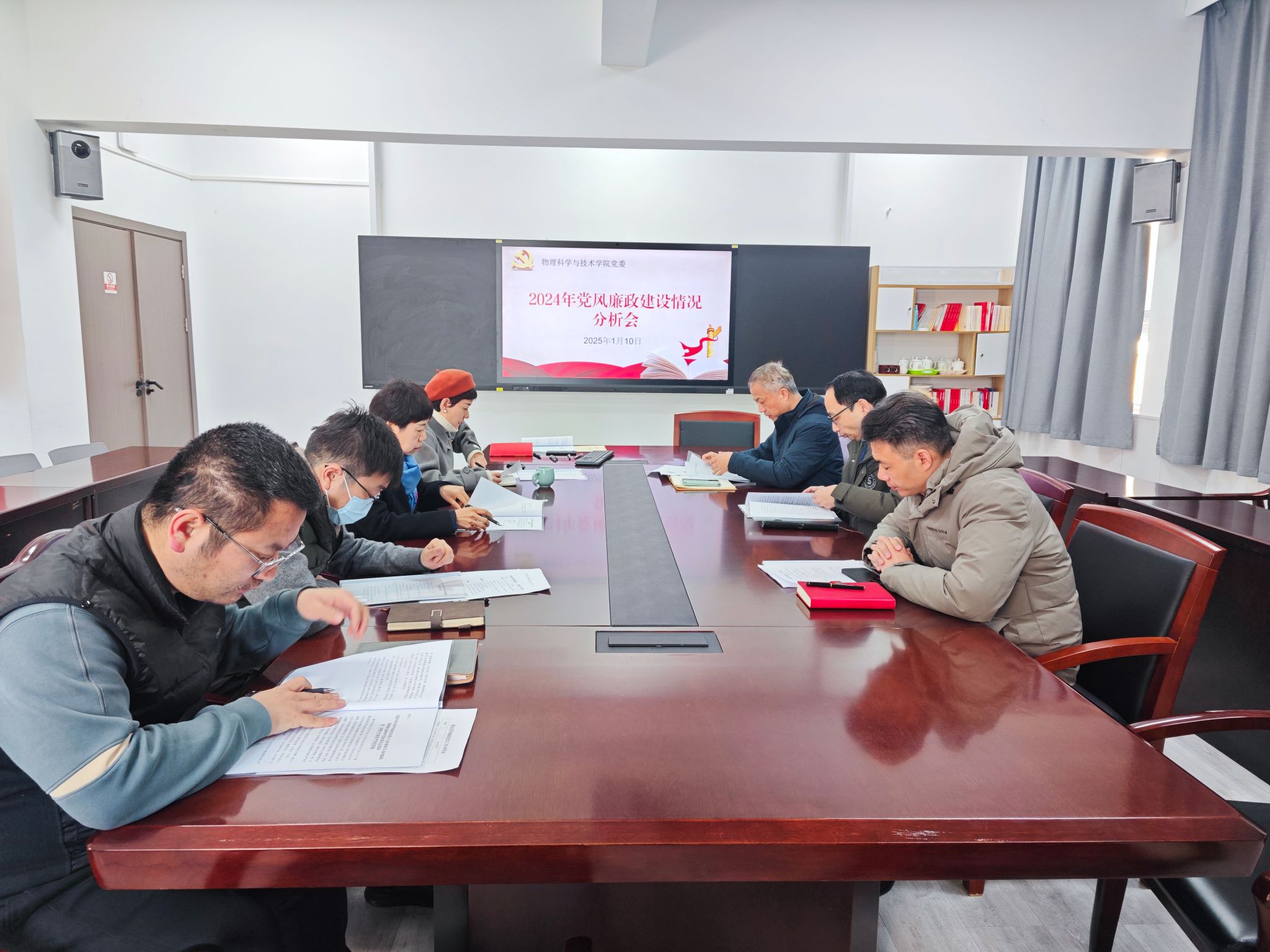 党委在龙赛理科楼北楼228“党员之家”召开2024年党风廉政建设情况分析会,会议由学院党委书记朱学庆主持,学院全体党委委员参加。会上,与会人员共同学习了《习近平在中共中央政治局第十五次集体学习时强调:贯彻落实新时代党的建设总要求进一步健全全面从严治党体系》《关于认真开好2024年党风廉政建设情况分析会的通知》等内容,提高政治站位,强化廉洁担当。学院党委书记朱学庆代表党委班子对2023年党风廉政建设落实情况进行“...