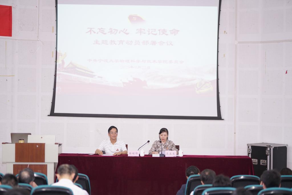 在龙赛理科楼报告厅举行“不忘初心、牢记使命”主题教育动员部署大会,学习贯彻《中共中央关于在全党开展“不忘初心、牢记使命”主题教育的意见》精神,并就开展主题教育进行全员传达与动员部署。学院党委书记吴立爽主持会议并作动员部署讲话。学校第二巡回指导组副组长骆明伟一行到会指导。学院党政班子成员、全体师生党员共82人参加会议。 吴立爽在动员讲话中指出,在中华人民共...